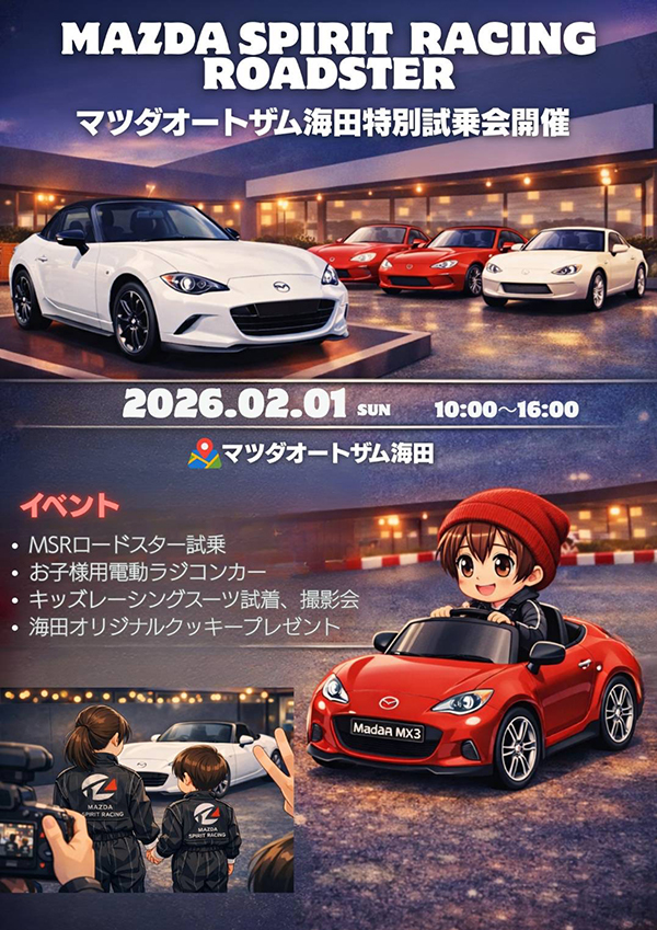 待望の MAZDA SPIRIT RACING ROADSTER 試乗車入庫を記念したイベントを開催します。
